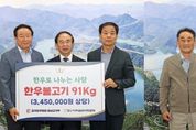 뉴한국방송뉴스통신사 김성의 기자 | 임실군에 추석 명절을 맞아 따뜻한 나눔 기부 행렬이 이어지고 있다. 지난 23일 (사)전국한우협회 임실군지부(지부장 이창우)가 한우 91kg(3,450천원 상당)을, (사)대한한돈협회 임실군지부(지부장 김성두)가 한돈 260kg(3, 600천원 상당)을 임실군에 전달했다. 한우협회 이창우 지부장은“추석을 맞아 회원들의 뜻을 모아 소외된 이웃들에게 도움을 주고자 기부를 결정했고, 지역사회에 사랑을 나누는 역할을 다하겠다”라고 전했다. 한돈협회 김성두 지부장은“작은 나눔으로 건강하고 행복하게 명절을 보내길 바라고, 나눔을 꾸준히 실천하겠다”고 말했다. 또한, 제일・성진여객(회장 김진태)에서는 지역사랑상품권 1,000만원을 기부 물품으로 전달했다. 김진태 회장은 임실군 신평면이 고향으로 2021년부터 1,000만원씩 지역사회의 어려운 이웃들을 돕기 위해 꾸준히 기부를 지속하고 있다. 김진태 회장은“매년 고향에 나눔을 실천할 수 있어 큰 의미가 있다”며“조금이나마 따뜻한 명절을 보내시길 바란다”라고 전했다. 기부 물품은 사회복지공동모