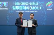뉴한국방송뉴스통신사 신유철기자 기자 | 영천시는 28일 영남대학교 천마아트센터 이시원 글로벌컨벤션홀에서 영남대학교와 지역 발전과 혁신 생태계 조성을 위한 상호 협력 업무협약(MOU)을 체결했다. 이번 협약은 양 기관이 자원 공유와 프로그램 공동 운영 등 상호 교류와 협력에 필요한 사항을 합의한 것이다. 주요 내용으로는 ▲경북 RISE 사업 공동 대응 ▲AI 등 신산업 인력양성 ▲문화·인문 콘텐츠 개발 ▲국가 공모사업 공동 참여 ▲공동 학술행사 개최 및 인적 교류 활성화 등으로, 지역사회와 대학이 함께 성장할 수 있는 협력 기반을 마련했다. 협약식 이후 진행된 ‘YU프론티어 포럼’에서는 최기문 영천시장이 ‘지방소멸시대, 변화와 혁신으로 영천의 미래를 디자인한다’를 주제로 강연을 펼쳤으며, 대학의 우수한 연구 역량과 지역 산업을 연결해 지속 가능한 혁신 생태계를 조성하는 것이 지역 발전의 핵심임을 강조했다. 최기문 시장은 “이번 협약을 계기로 지역과 대학이 긴밀히 협력해 미래 성장 동력을 발굴하고, 지속 가능한 발전 기반을 마련하겠다”며, “앞으로도 대학과 지역사회가 함께 성장할 수 있는 다양한 협력