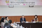 뉴한국방송뉴스통신사 신유철기자 기자 | 김완근 제주시장은 23일 시청 본관 회의실에서 열린 제주시여성단체협의회 정기총회에 참석했다. 이번 총회는 협의회 회원 등 20여 명이 참석한 가운데 2025년 사업 결산·감사보고, 2026년 제20대 임원진 선출 등 주요 안건이 논의됐다. 이날 총회에서는 여성의 사회참여 촉진과 양성평등 문화 확산에 기여한 이임회장 3명에게 감사패가 전달됐으며, 제20대 협의회장으로 한국자유총연맹 제주시지회 여성회 김선자 회장이 연임했다. 한편, 제주시여성단체협의회는 정기총회 폐회 후 광양시장 골목형상점가를 방문해 지역상권 소비 심백 캠페인을 전개했다. 김완근 제주시장은 “여성단체협의회가 여성 권익 증진과 다양한 봉사활동을 통해 시민 모두가 더 행복하고 안전한 삶을 누릴 수 있도록 크게 기여해주셨다”며, “앞으로도 제주시와 여성단체협의회가 함께 협력해 더 나은 미래를 만들어 나가길 기대한다”고 말했다. [뉴스출처 : 제주도 제주시]