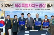 뉴한국방송뉴스통신사 신유철기자 기자 | 제주특별자치도는 지역산업 발전과 숙련기술의 전승에 기여한 ‘2025년 제주특별자치도 명장’을 선정하고, 30일 명장 증서와 현판을 전달했다. 올해 명장으로는 ▲건축설비 분야 이영호 ▲제과·제빵 분야 김철곤 ▲건축시공 분야 조환진 씨가 선정됐다. 이들은 15년 이상 현장 실무 경험을 바탕으로 축적한 높은 기술 완성도와 독보적인 숙련기술을 산업현장에 적용해 지역산업의 질적 성장을 이끈 공로를 인정받았다. 특히 기술 연마에 그치지 않고 청소년 진로 특강, 기술 재능기부, 사회공헌 활동 등을 통해 기술인의 사회적 책임을 실천하며 지역사회에 선한 영향력을 확산해 온 점도 높이 평가됐다. 선정된 명장에게는 명장 증서와 함께 사업장 홍보에 활용할 수 있는 명장 현판이 수여됐으며, 숙련기술 발전을 위한 기술장려금 1,000만 원이 5년간 분할 지급된다. 이날 제주도청 백록홀에서 열린 증서 수여식에는 명장 가족과 ㈔제주도명장회 오운자 이사장을 비롯한 선배 명장들이 참석해 후배 명장들의 새로운 출발을 축하했다. 참석자들은 오랜 시간 한길을 걸어온 명장들
