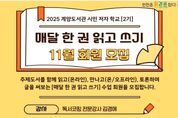 뉴한국방송뉴스통신사 신유철기자 기자 | 인천광역시교육청계양도서관은 인천시민을 대상으로 11월 7일부터 21일까지 시민저자학교 2기 프로그램 ‘매달 한 권 읽고 쓰기’를 운영한다. ‘매달 한 권 읽고 쓰기’는 한 권의 책을 깊이 읽고 그 안에서 발견한 생각과 감정을 글로 표현하는 시민 창작형 독서 프로그램으로 11월의 주제 도서는 김금희 작가의 ‘대온실 수리 보고서’이다. 참가자들은 작품을 중심으로 서로의 다름을 이해하고 글쓰기를 통해 자신과 세상을 성찰하는 시간을 갖는다. 참가 신청은 10월 27일부터 오전 9시부터 계양도서관 누리집에서 가능하며, 자세한 내용은 누리집 공지사항을 참고하거나 종합자료실로 문의하면 된다. [뉴스출처 : 인천광역시교육청]