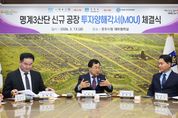 뉴한국방송뉴스통신사 신유철기자 기자 | 경주시는 ㈜태웅산업, ㈜수시스템과 내남면 명계3일반산업단지 내 공장 신설 및 본사 이전을 위한 투자양해각서(MOU)를 체결했다고 15일 밝혔다. 지난 13일 시청 내 대외협력실에서 열린 협약식에는 주낙영 경주시장을 비롯해 김필규 ㈜태웅산업 대표이사, 방예현 ㈜수시스템 대표이사 등 기업 관계자들이 참석했다. 이번 협약에 따라 두 기업은 명계3산업단지 동일 부지 내 필지를 분할 활용해 신규 공장을 건립할 계획이다. ㈜태웅산업은 약 7,920㎡ 규모 부지에 77억 원을 투자해 자동차 부품 생산 공장을 신설하고 15명을 신규 고용할 예정이다. ㈜수시스템은 약 3,967㎡ 부지에 48억 원을 투자해 본사를 경주로 이전하고 생산시설을 구축하며 27명을 신규 채용할 계획이다. 두 기업의 총 투자 규모는 125억 원, 고용 규모는 42명으로 이번 투자가 명계3일반산업단지 활성화와 지역 자동차 부품 산업 경쟁력 강화에 기여할 것으로 기대된다. ㈜태웅산업은 1998년 설립돼 2000년 경주 외동으로 이전한 이후 자동차 및 전자제품 부품을 생산하며 지역 자동차 부품