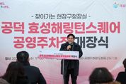 뉴한국방송뉴스통신사 신유철기자 기자 | 박강수 마포구청장은 12월 3일 오후 5시, 공덕역 10번 출구 앞 광장에서 열린 ‘공덕 효성해링턴스퀘어 공영주차장 개장식’에 참석해 시설 개장을 축하했다. 이번에 문을 연 공덕 효성해링턴 스퀘어 공영주차장(도화동 25-13)은 총 21면 규모로 조성된 거주자우선주차장으로, 구는 공공기여를 통해 확보한 이 공간을 주민들에게 개방해 운영하기로 했다. 아파트와 상가, 오피스가 밀집한 도화동·공덕동 일대는 주차 수요에 비해 공간이 부족해 주민과 방문객 모두가 지속적인 불편을 겪어 왔다. 이번 공영주차장 운영을 통해 지역에서 꾸준히 제기돼 온 주차 불편이 상당 부분 해소될 것으로 기대되며, 생활권 내 주차 편의도 한층 개선될 전망이다. 행사는 식전 공연을 시작으로 개회 및 내빈소개, 경과보고에 이어 박강수 마포구청장의 기념사가 진행됐으며, 이어 테이프 커팅과 기념촬영 후 시설 라운딩이 이어졌다. 추운 날씨 속에서도 박강수 마포구청장을 비롯해 백남환 구의회 의장, 지역 주민 등 약 100여 명이 참석해 주차 공간 확충의 성과를 함께 축하했다.