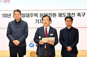 뉴한국방송뉴스통신사 신유철기자 기자 | 이현재 하남시장은 17일 “10년 공공임대아파트에 거주하는 무주택 서민들의 주거 안정을 위해 공공임대아파트의 분양전환가 산정기준을 5년 공공임대아파트와 동일한 수준으로 변화될 수 있도록 국토교통부에 제도 개선을 요청했다”고 밝혔다. 이현재 시장은 이날 시청 상황실에서 진행된 기자회견을 통해 “10년 공공임대아파트의 분양전환가 산정기준이 5년 공공임대아파트 보다 매우 불리하게 되어있어 무주택 서민들의 내 집 마련 꿈을 산산이 조각내고 있다”며 이같이 말했다. 문제의 핵심은 10년 임대와 5년 임대주택 간의 ‘분양전환가격 산정 방식’에 있다. 현재 10년 공공임대주택은 분양전환가격이 ‘현재 시세’인 감정평가금액을 넘지 못하도록만 되어 있다. 즉, 최근 몇 년간 폭등한 부동산 시세가 사실상 그대로 분양전환가격이 되는 구조다. 반면, 5년 공공임대주택은 ‘최초의 건설원가’와 ‘현재 시세(감정평가금액)’를 더한 뒤 2로 나눈(산술평균한) 금액으로 분양전환가격이 책정된다. 쉽게 말해, 5년 임대 입주자는 최초의 저렴했던 ‘원가’ 혜택을 절반이라도 받지만, 10년 임대 입주자는 그 혜