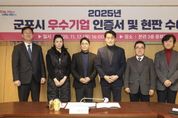 뉴한국방송뉴스통신사 신유철기자 기자 | 군포시는 17일 시청 3층 중회의실에서 ‘2025년 군포시 우수기업 인증서 및 현판 수여식’을 열고 5개 우수기업에 인증서와 현판을 수여했다. ‘우수기업 선정사업’은 2022년부터 시작하여 올해 4번째로 추진하는 사업으로 일자리 창출, 세수 증대 등 지역경제 활성화에 기여한 기업을 선정하여 인센티브를 부여하는 사업이다. 선정된 우수기업은 인증기간(3년) 동안 군포시 중소기업 육성자금 지원 시 추가 이차보전, 군포시 관내 공영주차장 이용 시 주차요금 감면, 협약병원 의료비 지원 등의 인센티브가 부여된다. 하은호 군포시장은 “어려운 경제 상황 속 관내 우수한 기업에 활력을 불어넣기 위한 우수기업 선정사업에 관심 가져주심에 감사드리며, 앞으로도 기업지원 사업을 다각화하여 기업 경영하기 좋은 환경을 만들겠다”고 말했다. 올해 선정된 군포시 우수기업은 △(주)아이씨에이치 △㈜지비티코리아 △주식회사예선테크 △듀라텍 주식회사 △㈜트리플닷 으로 총 5개 기업이다. [뉴스출처 : 경기도 군포시]
