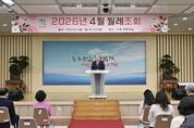 뉴한국방송뉴스통신사 신유철기자 기자 | 동두천시는 4월 1일 시청 대회의실에서 4월 명예시장으로 위촉된 조황래 동두천중앙성모병원 원장과 전 직원이 참석한 가운데 월례조회를 개최했다. 이날 식전 공연에서는 송내동 주민자치 프로그램 댄스트롯장구팀의 재능 기부로 춤과 노래를 선보여 분위기를 더했다. 박형덕 동두천시장은 제19회 암 예방의 날 유공 공무원 1명(▲훈격 장관)과 자원봉사 활동 유공 시민 1명(▲훈격 도지사)에게 표창을 전수했다. 또한, 통합방위지원태세 업무 유공 시민 2명, 시정발전 유공 시민 20명에게 표창을 수여했으며, 2025년도 주요업무 자체평가 15개 부서에 각각 상장을 수여하고 격려했다. 훈시 사항으로는 첫째, 시민들의 야외 활동이 본격화되는 시기인 만큼 산불 예방과 화재 안전관리에 만전을 기해 달라고 했다. 둘째, 국제유가와 물가 급등으로 서민 경제가 그 어느 때보다 힘든 시기인 만큼 민생 안정을 위해 따뜻한 나눔 행정을 펼쳐줄 것을 강조했다. 끝으로, 시정 발전을 위해 멈추지 않는 혁신을 이어 나가자고 독려했다. 그 일환으로 10년간 방치됐던 소요산 축산물 브랜드육